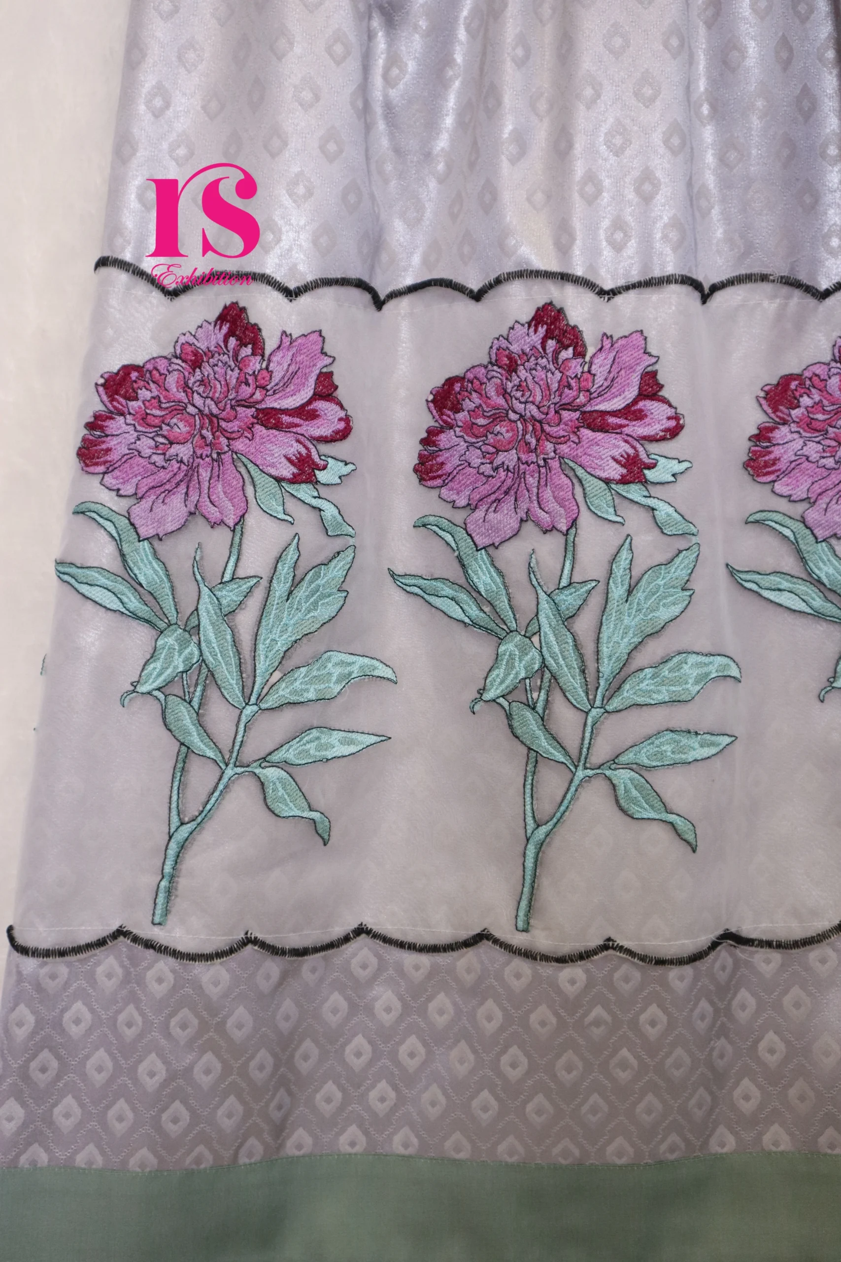 Silver Grey Pretty Embroidered Net Panel Rida