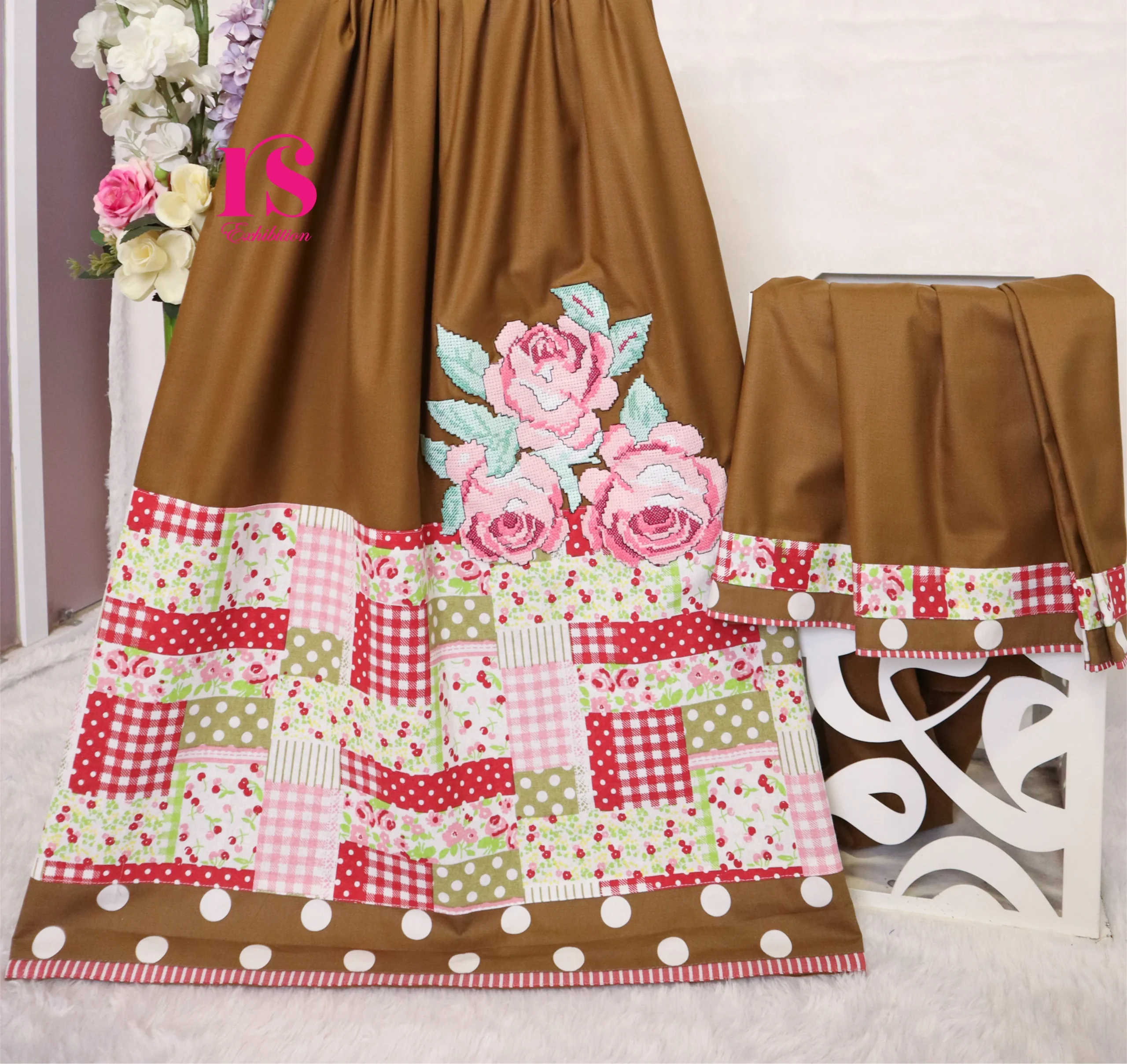 Dark Brown Rida With Nice Flower Patch Work