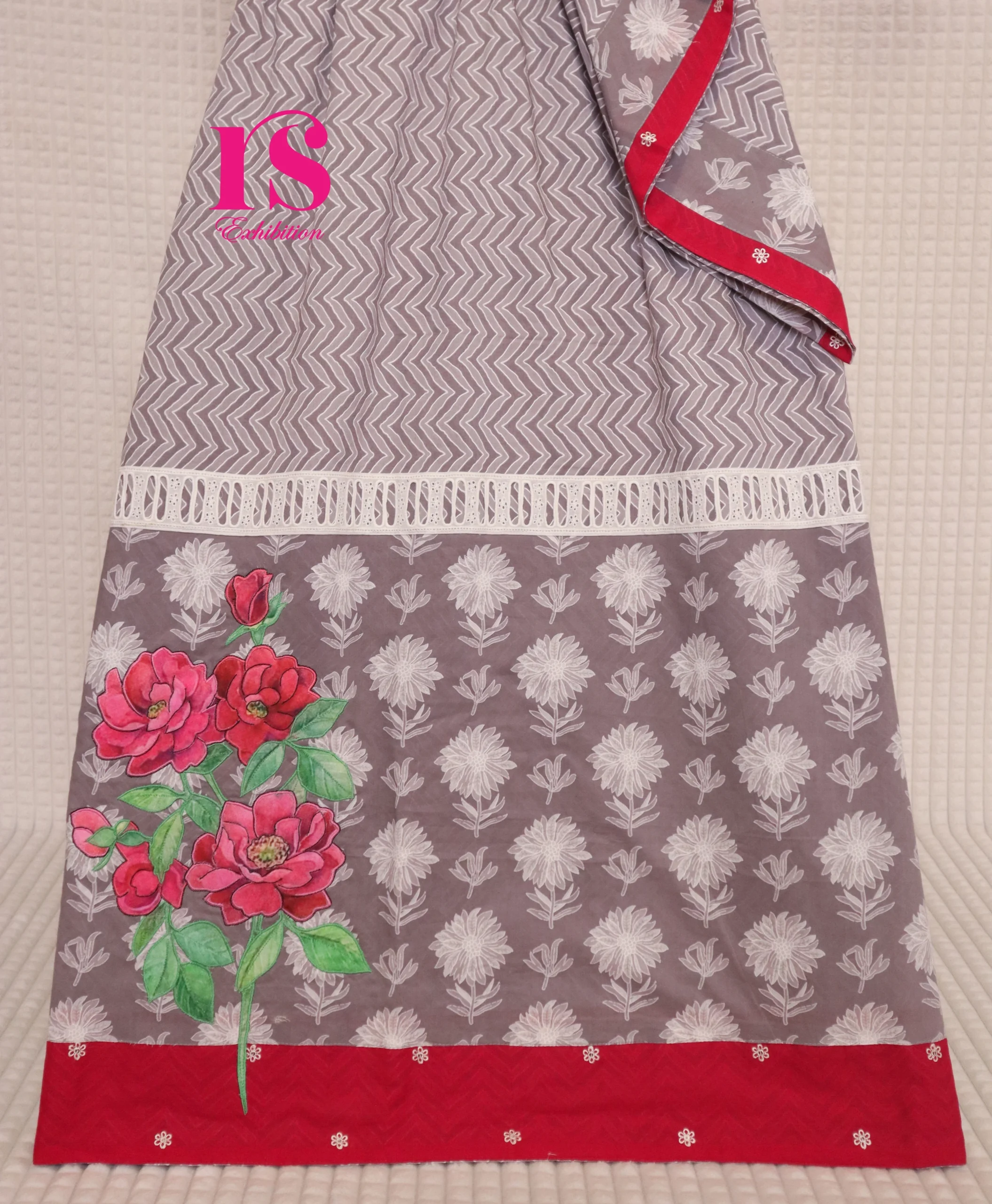 Grey Base With White Strips With Patch Work Rida