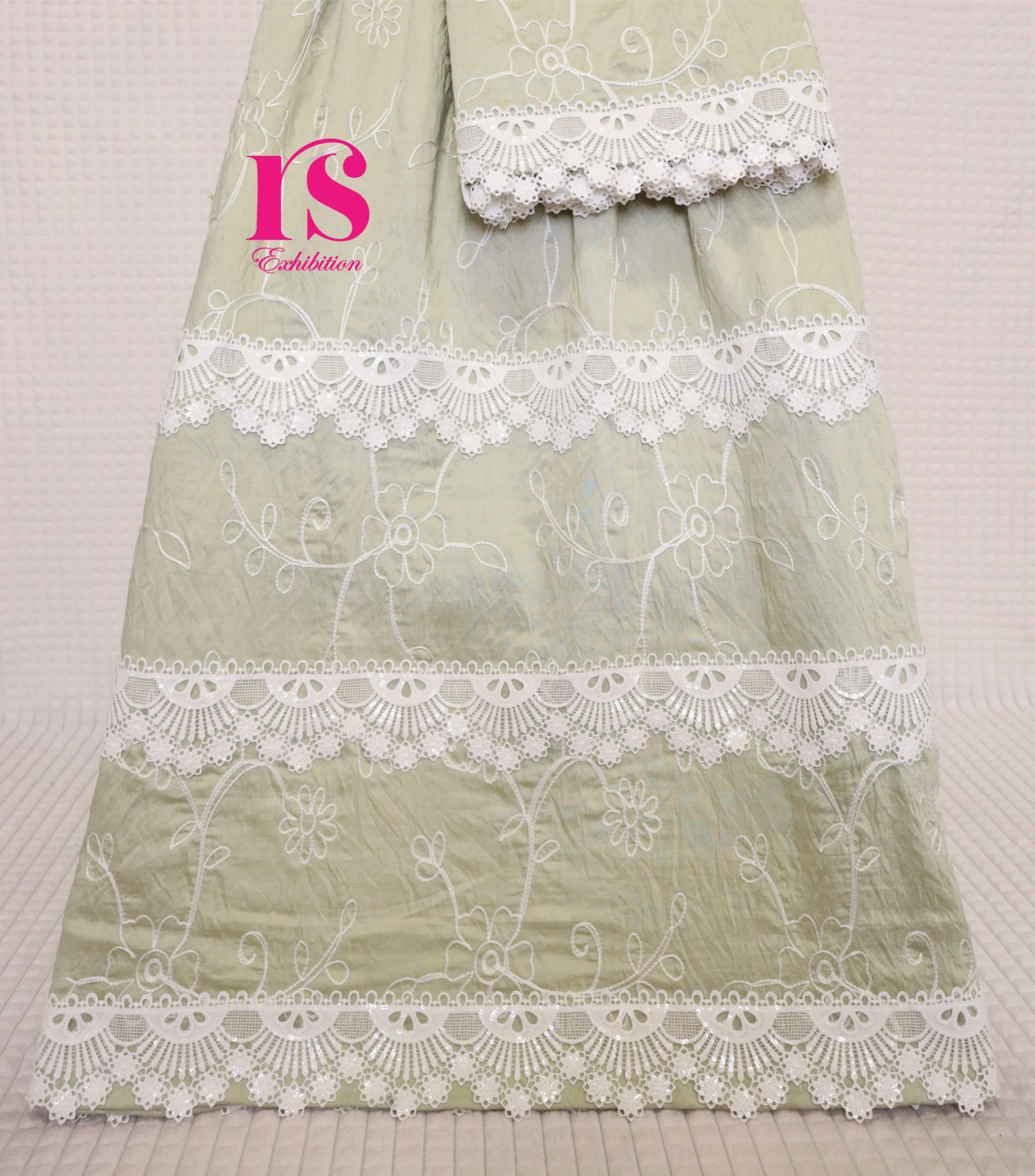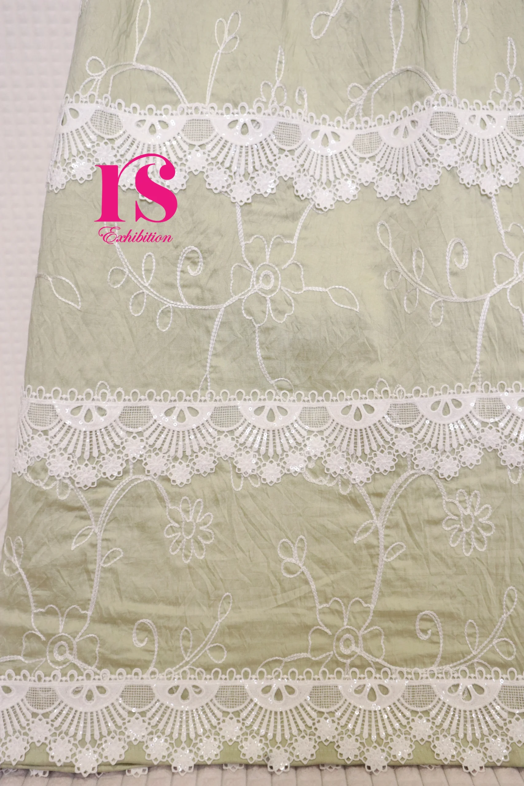 Sage Green Embroidered Rida With Dainty Laces