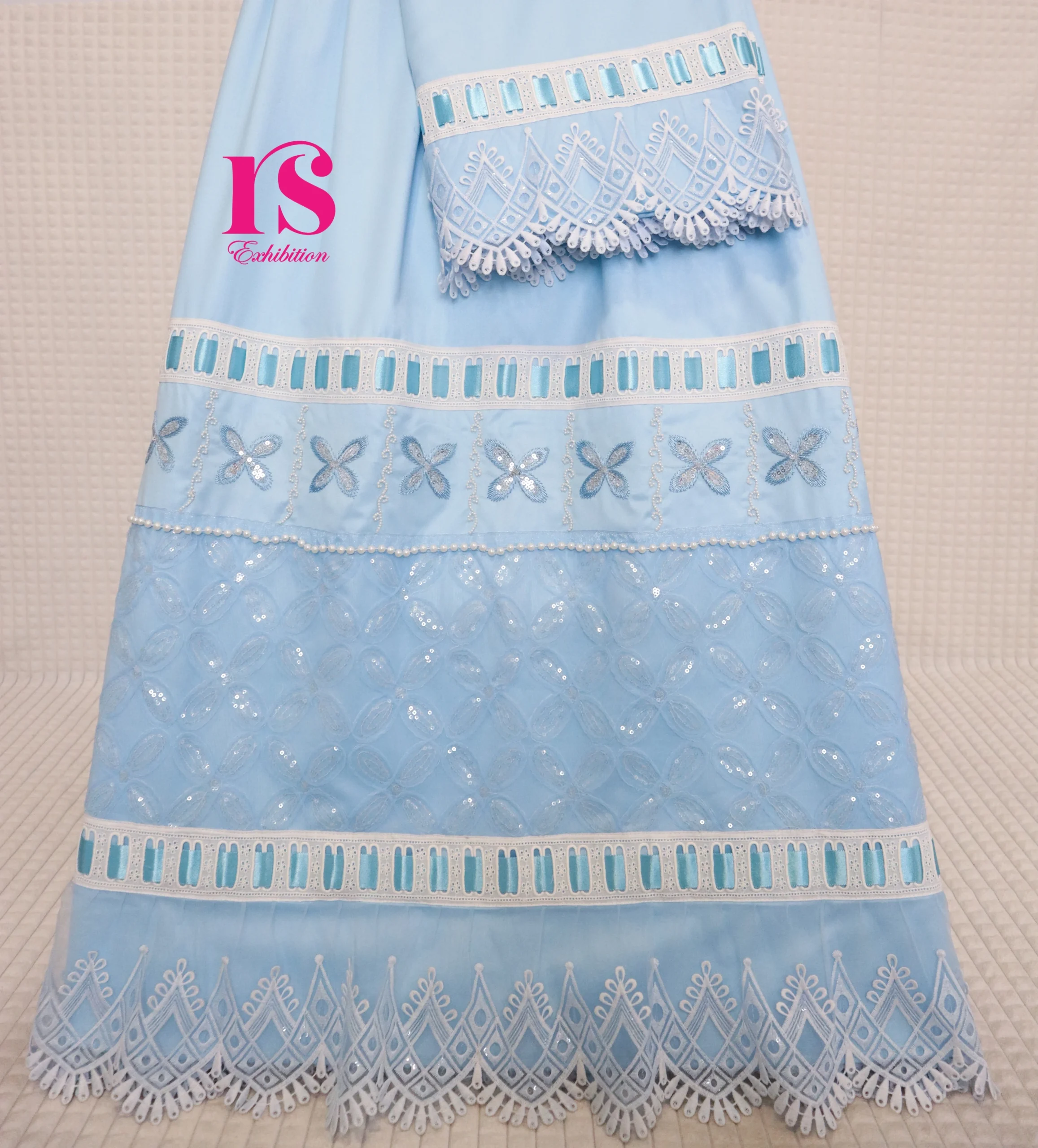 Blue Checkered Aari Patch Work Rida