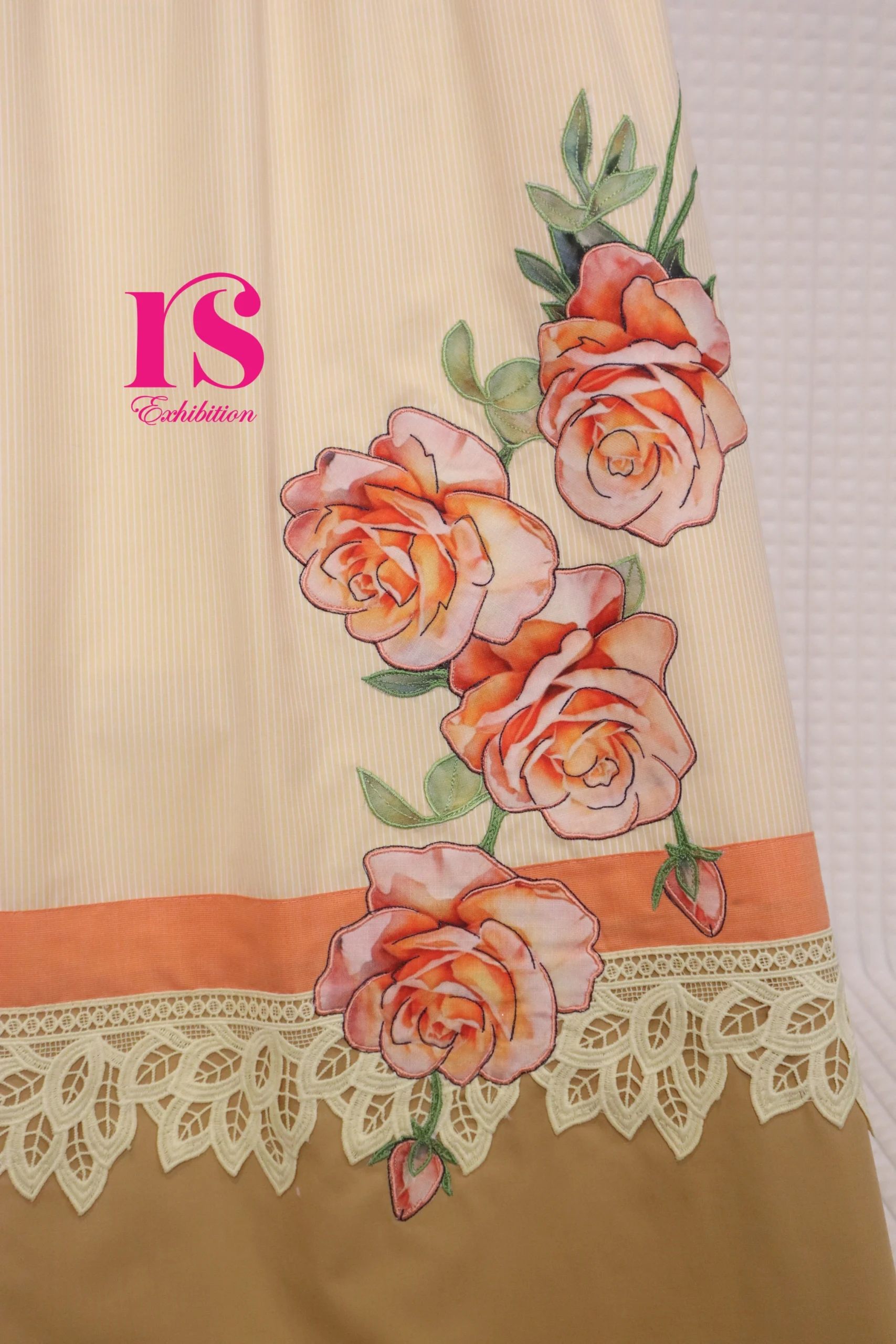 Mango Yellow Self Stripes Patch Work Rida
